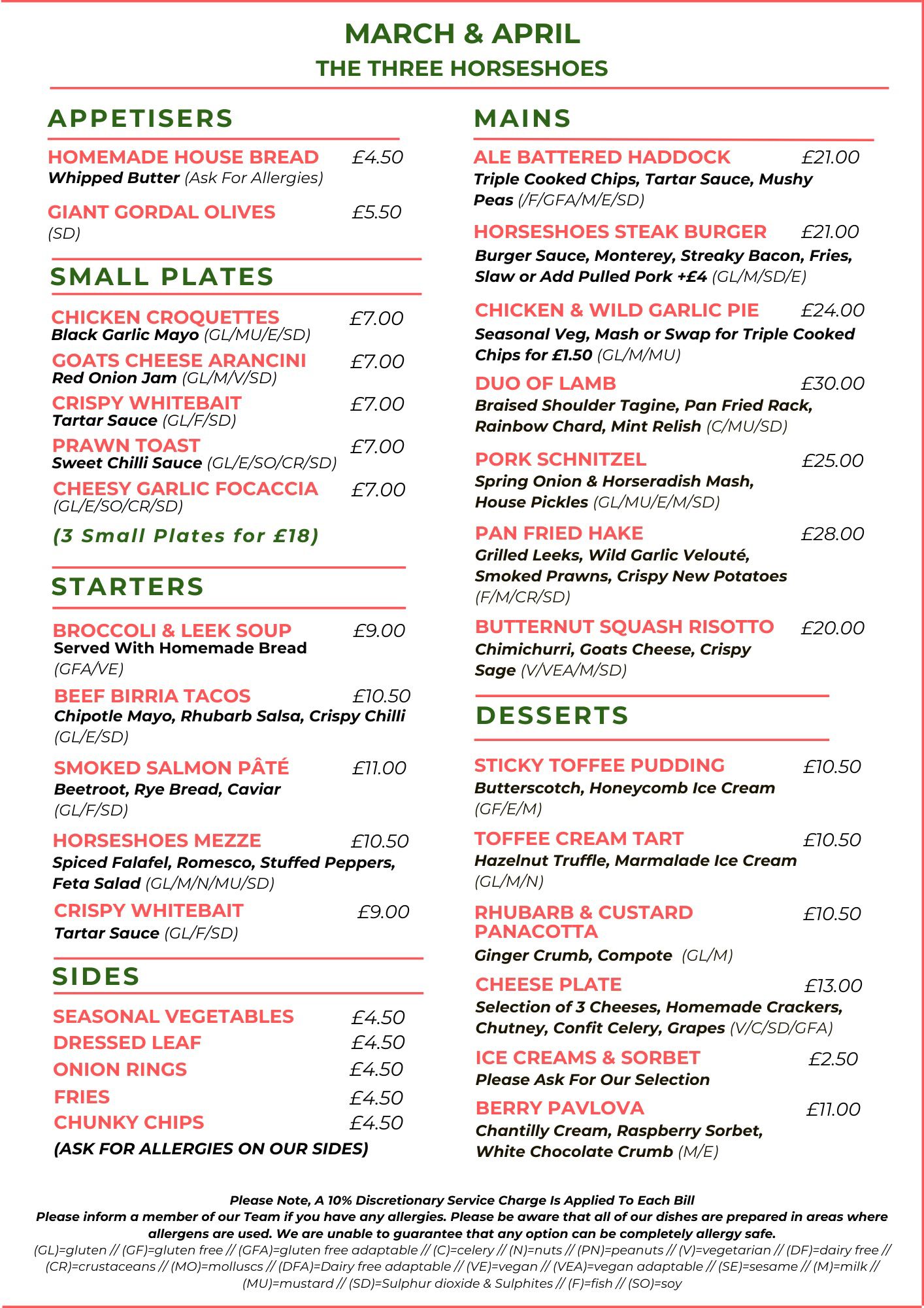 At The Three Horseshoes, our team is dedicated to catering to your foodie needs with a blend of pub classics and an eclectic and unique mix of dishes designed to suit all tastes. You’ll find our commitment to quality and care is evident in every bite.